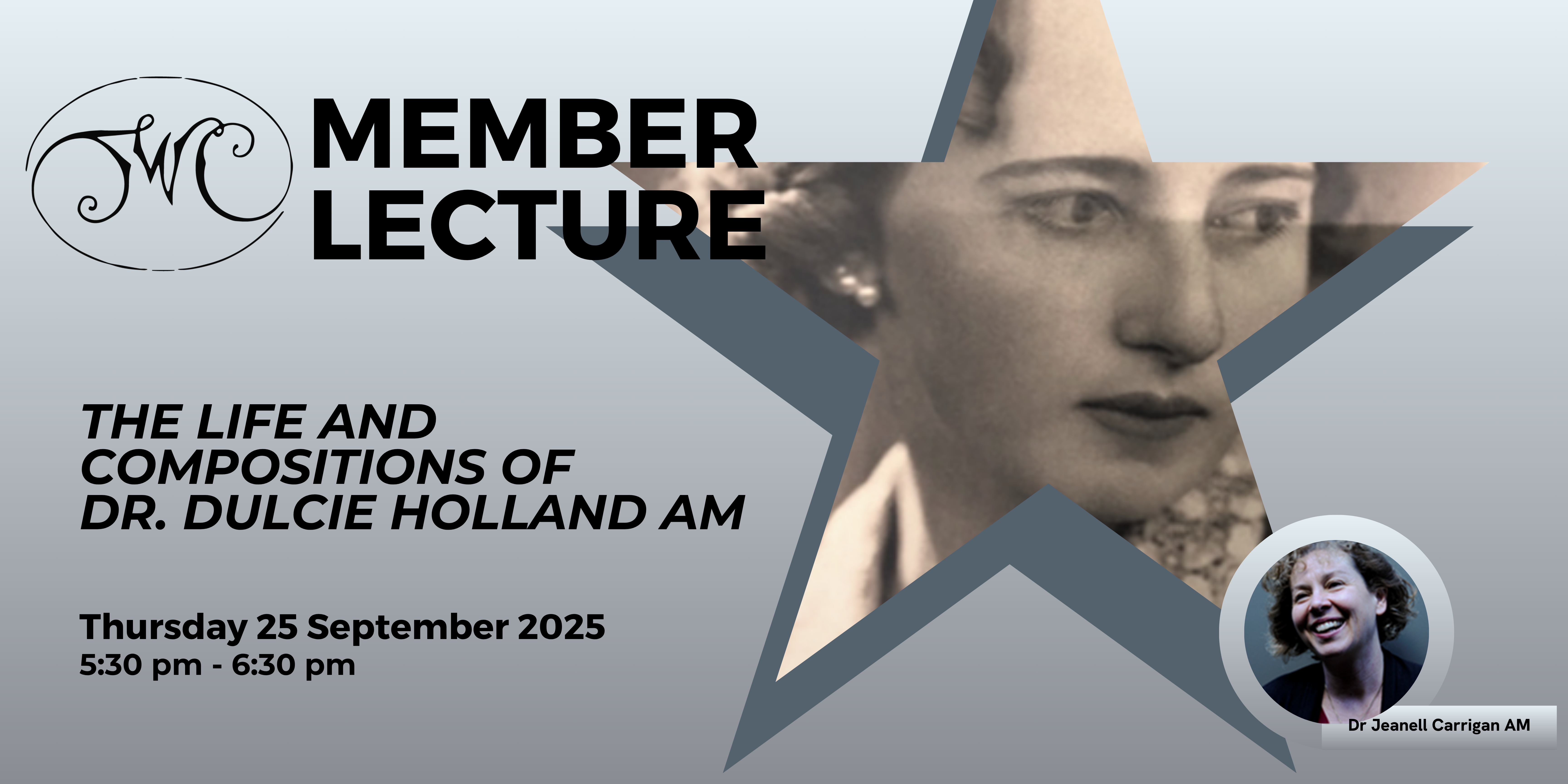 Join us for an insightful discussion on The Life and Compositions of Dr Dulcie Holland AM, presented by Associate Professor Dr Jeanell Carrigan AM.