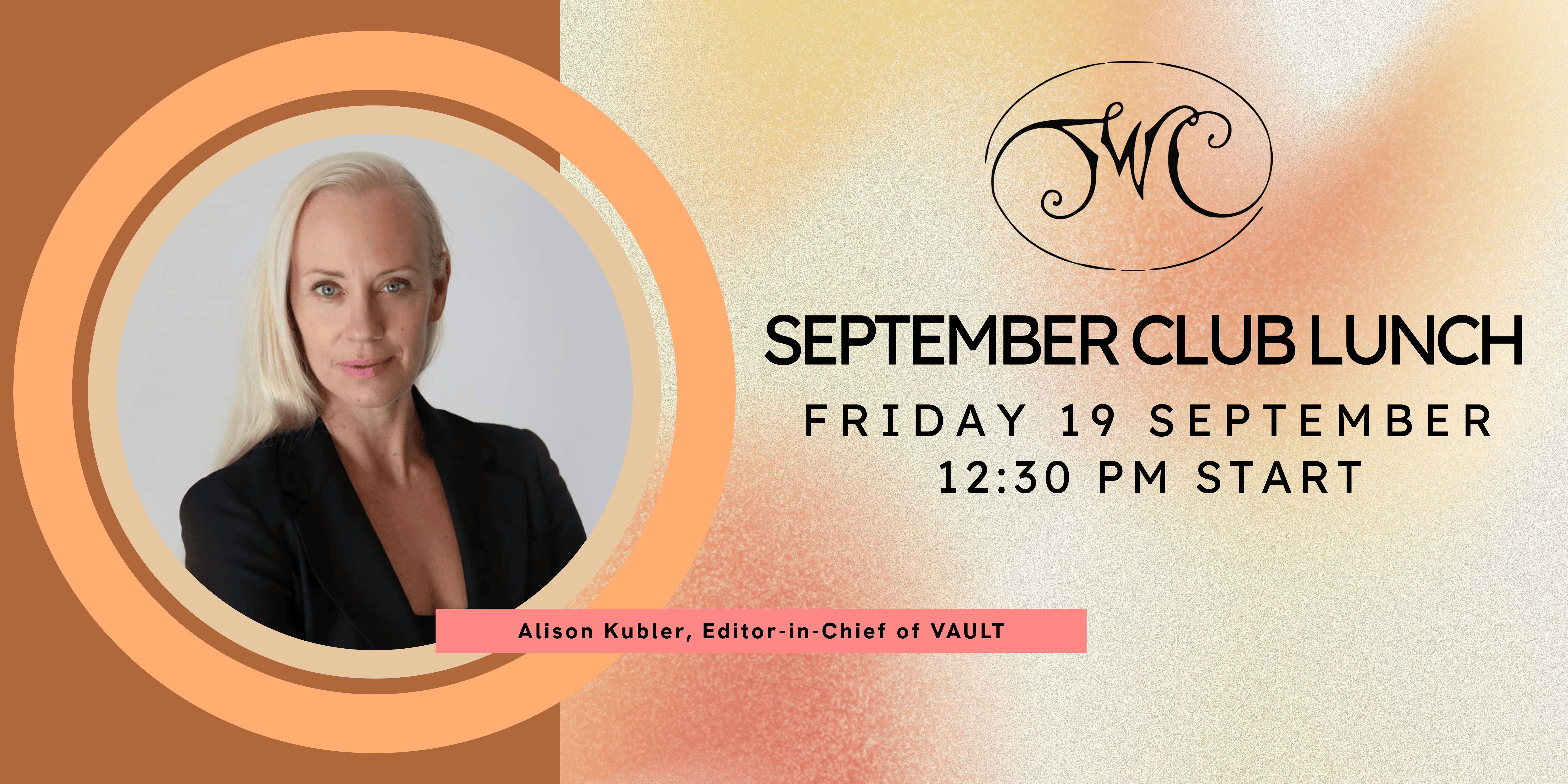 We are delighted to welcome Alison Kubler, Editor-in-Chief of VAULT: Art & Culture magazine, as our September Club Lunch speaker. With more than 25 years’ experience working in the Australian arts sector, Alison is a respected curator, writer, and commentator whose career spans museums, publishing, and cultural policy. At the helm of VAULT, she has shaped one of Australia’s leading contemporary art and culture publications, championing artists and new ideas while engaging audiences in vital conversations about creativity today.